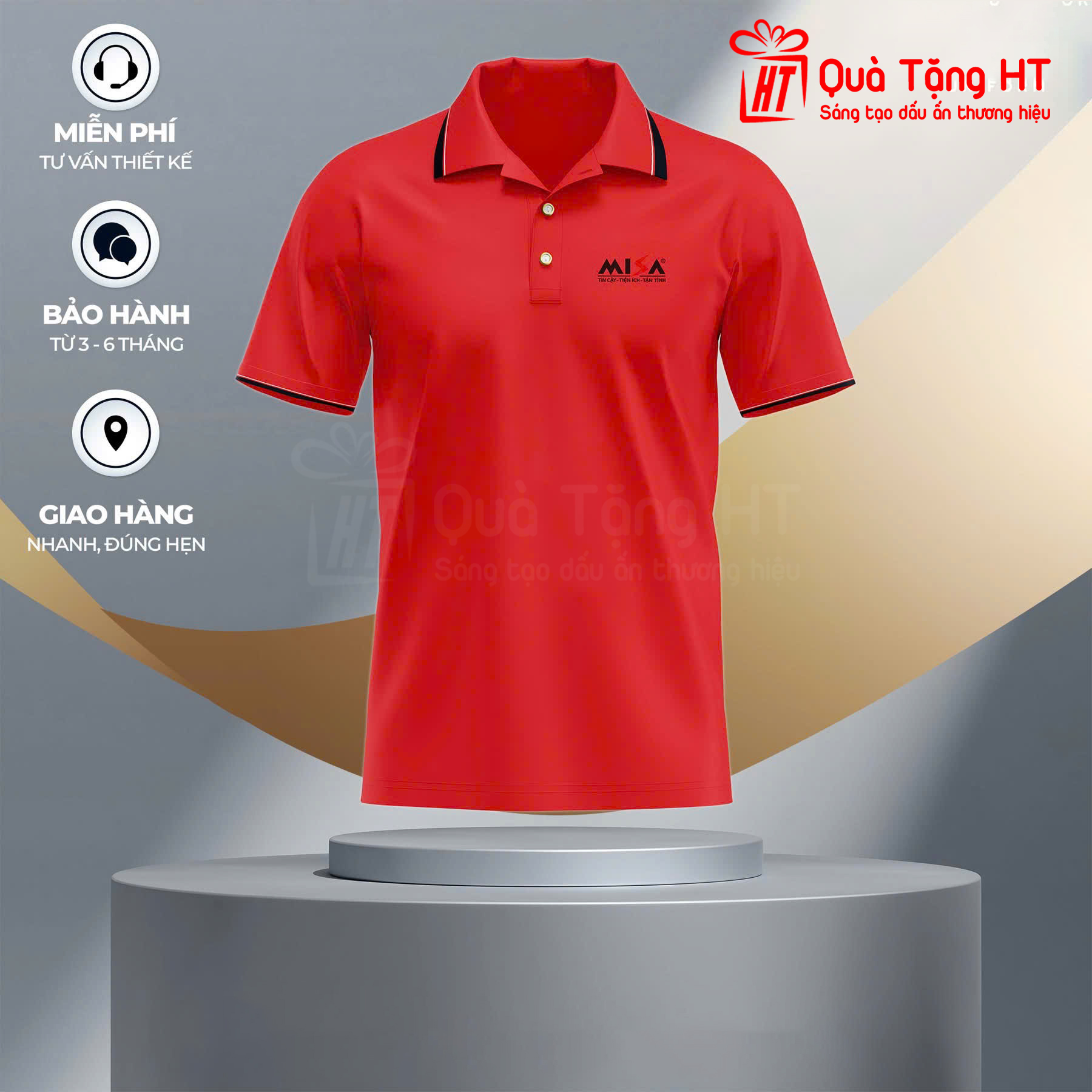 In/thêu logo 2 màu trắng trước ngực
