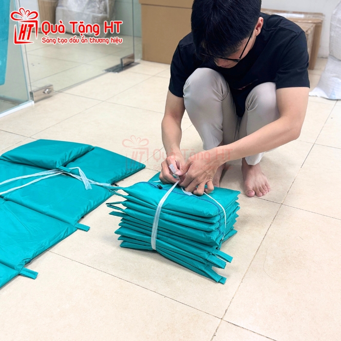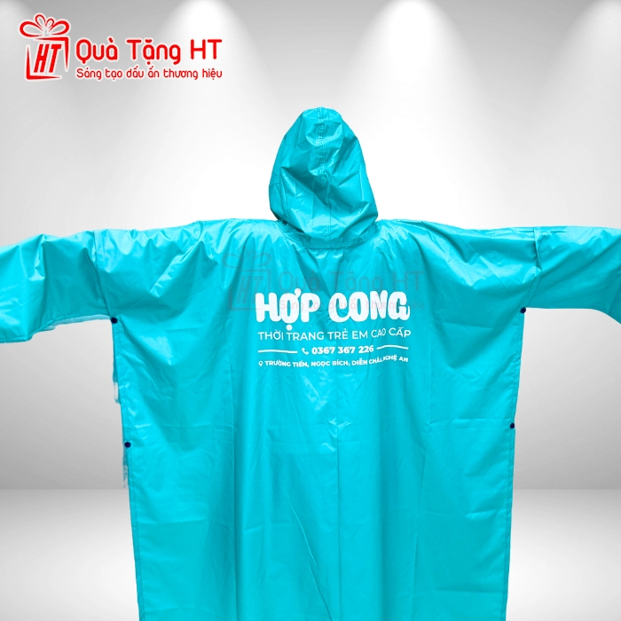 • Có túi đựng áo mưa màu xanh cùng chất liệu