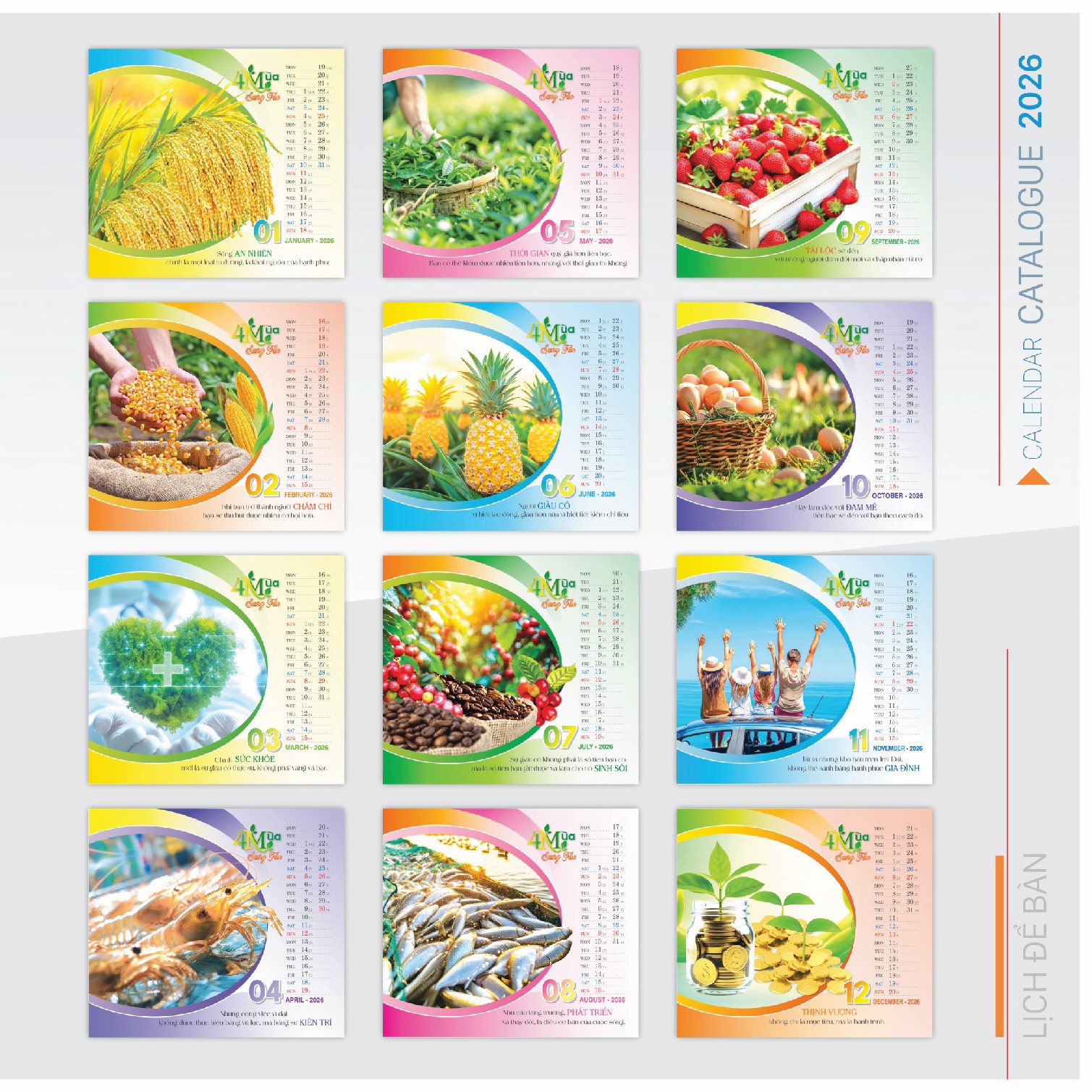 LỊCH ĐỂ BÀN BỐN MÙA SUNG TÚC